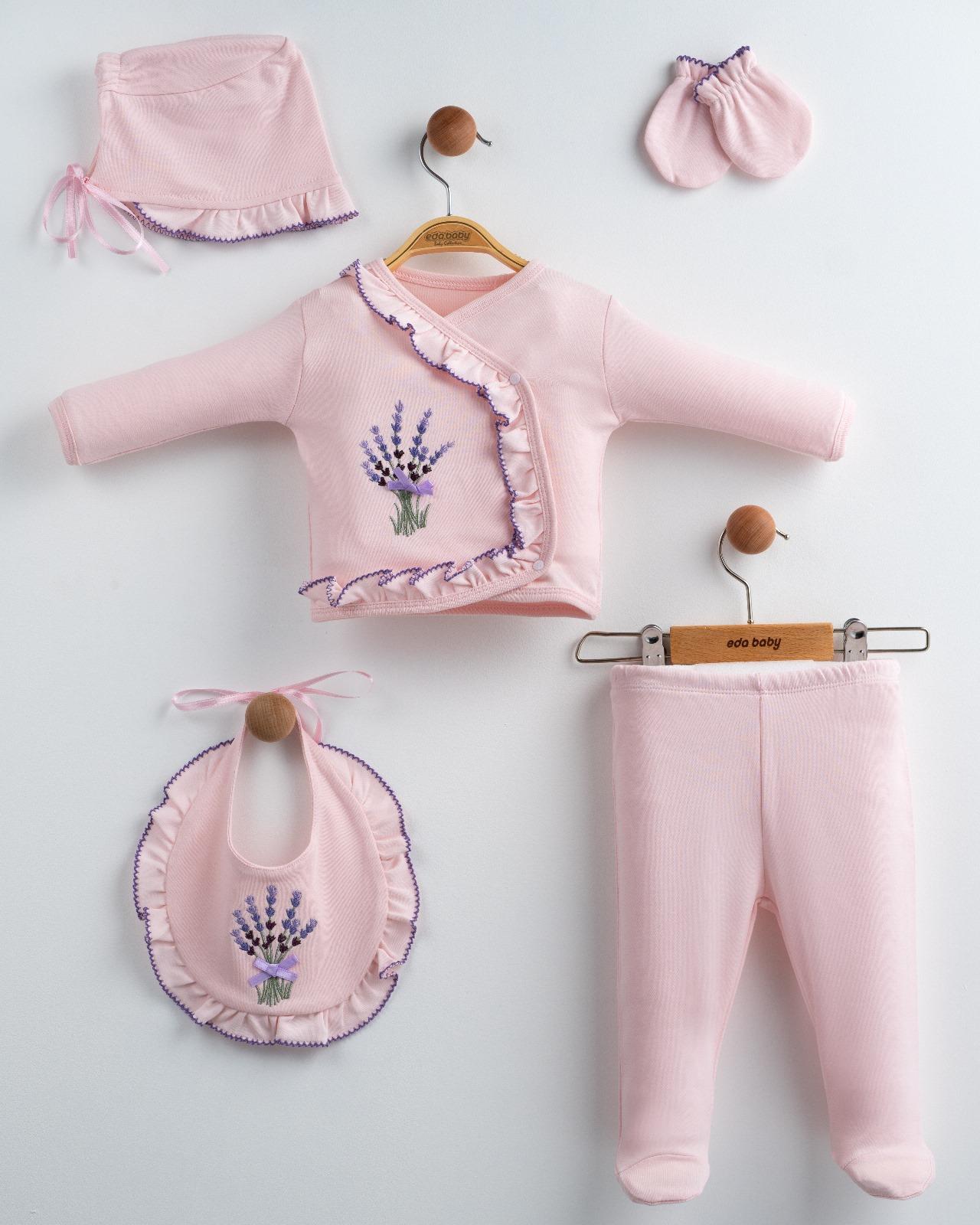 Yenidoğan Kız Bebek 5 Parça Hastane Çıkışı Zıbın Set